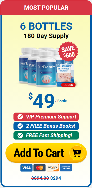 We recommend taking PurDentix for at least 3 to 6 months to improve oral health. We offer a 6-bottle package that comes with 2 free bonus books. This is the most popular package, which also comes with free shipping.